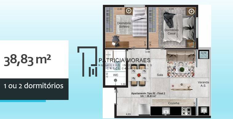 Unidades compactas com possibilidade de até 2 dormitórios, projetadas com layouts funcionais e ambientes que valorizam cada metro quadrado. Ideal para quem deseja liberdade e autonomia, sem abrir mão da sofisticação e da conveniência.